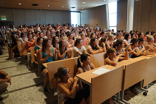 - Ses trois amphithéâtres de 120 places et ses 8 salles de cours équipées de matériel multimédia et tableaux interactifs favorisant la formation interactive en petits groupes.
